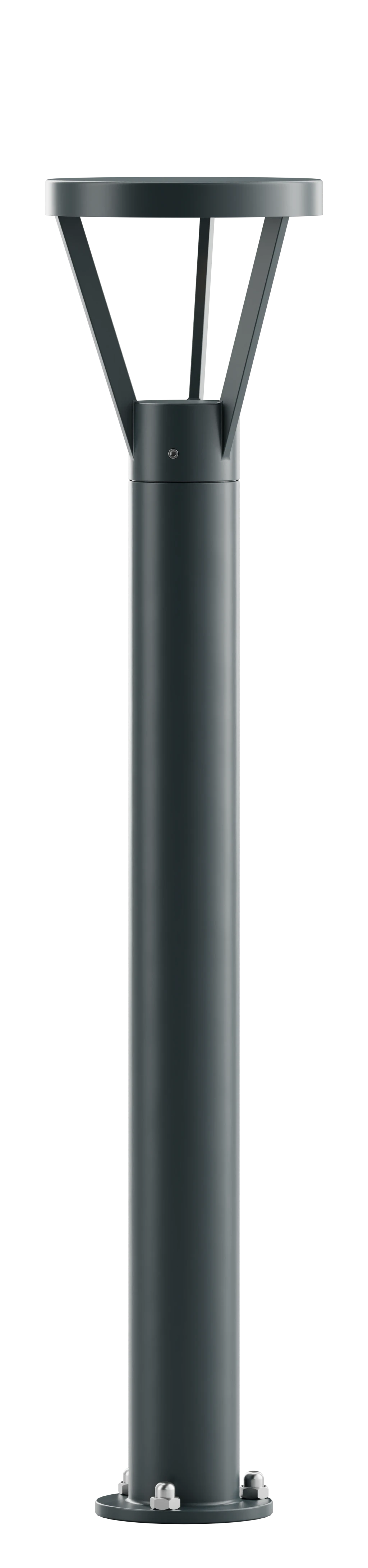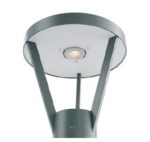 Konstrukcja opiera się na smukłym, cylindrycznym korpusie zwieńczonym charakterystyczną głowicą z płaskim daszkiem, co sprawia, że idealnie nadaje się do oświetlania alejek, podjazdów oraz ogrodów w stylu współczesnym.