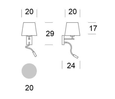 Kinkiety dostępne w wersji z 1 włącznikiem lub bez włączników widocznych na puszce kinkietu.