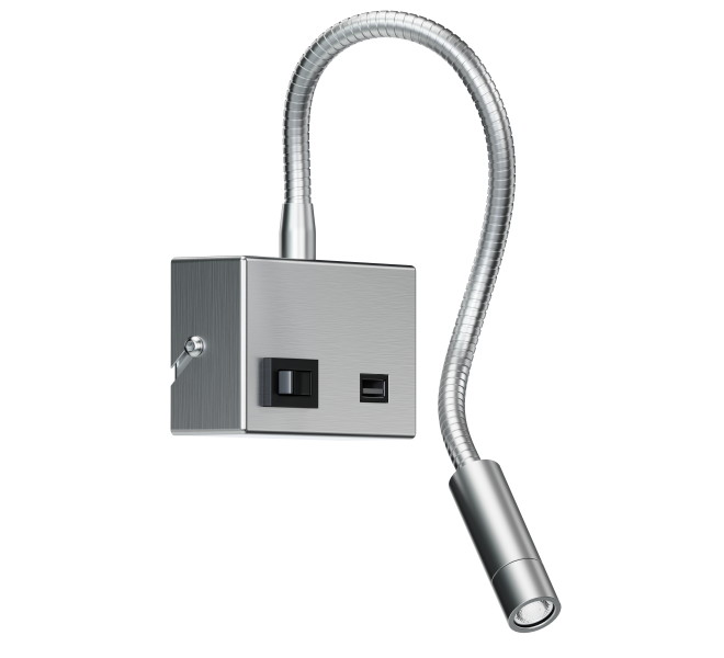 Kinkiety KANDEL to nowoczesne oprawy przeznaczone do oświetlenia sypialni w mieszkaniach oraz w pokojach hotelowych. Źródło LED znajduje się w głowicy zamontowanej na elastycznym ramieniu.