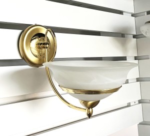 Kinkiet Milano wykonany z metalu w kolorze złotym w komplecie ze szklanym kloszem.