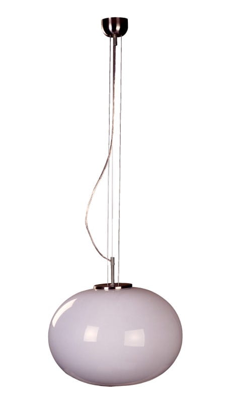 Lampa PUFA to oprawa o prostej eleganckiej formie z lekko spłaszczonym, kulistym kloszem szklanym w wersji ecru lun spirala.